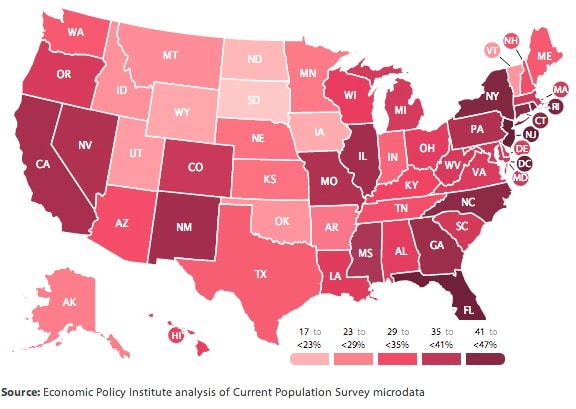 Last year, long-term unemployment was above that level in 41 states and D.C., according to EPI, a think tank whose research focuses on low- and middle-income workers. Long-term unemployment is lowest in the Dakotas, where less than a fifth of the jobless have been out of work for long stretches. It’s highest in D.C., New Jersey and Florida, where more than 45 percent of the jobless are long-term unemployed.