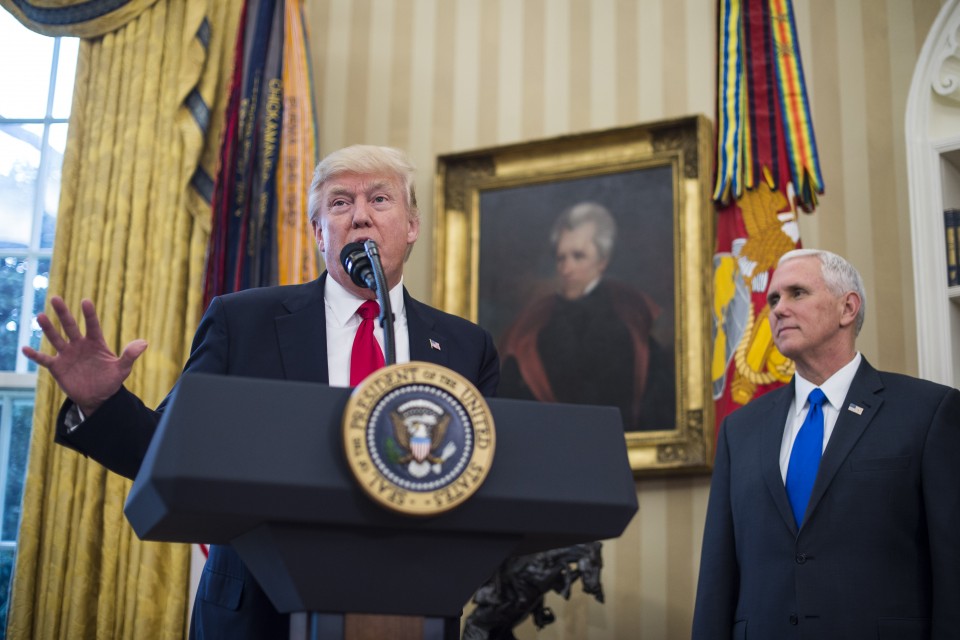 As Trump addressed the group, he marveled at how his wife’s “poll numbers went through the roof last year” and recognized the women serving in his administration, strong female leaders throughout history and some of the women he had met over the past month.“So as a man, I stand before you as president, but if I weren’t president, I wouldn’t be happy to hear that statement — that would be a very scary statement to me because there’s no way we can compete with you,” Trump said. “So I would not be happy. Just wouldn’t be happy.”