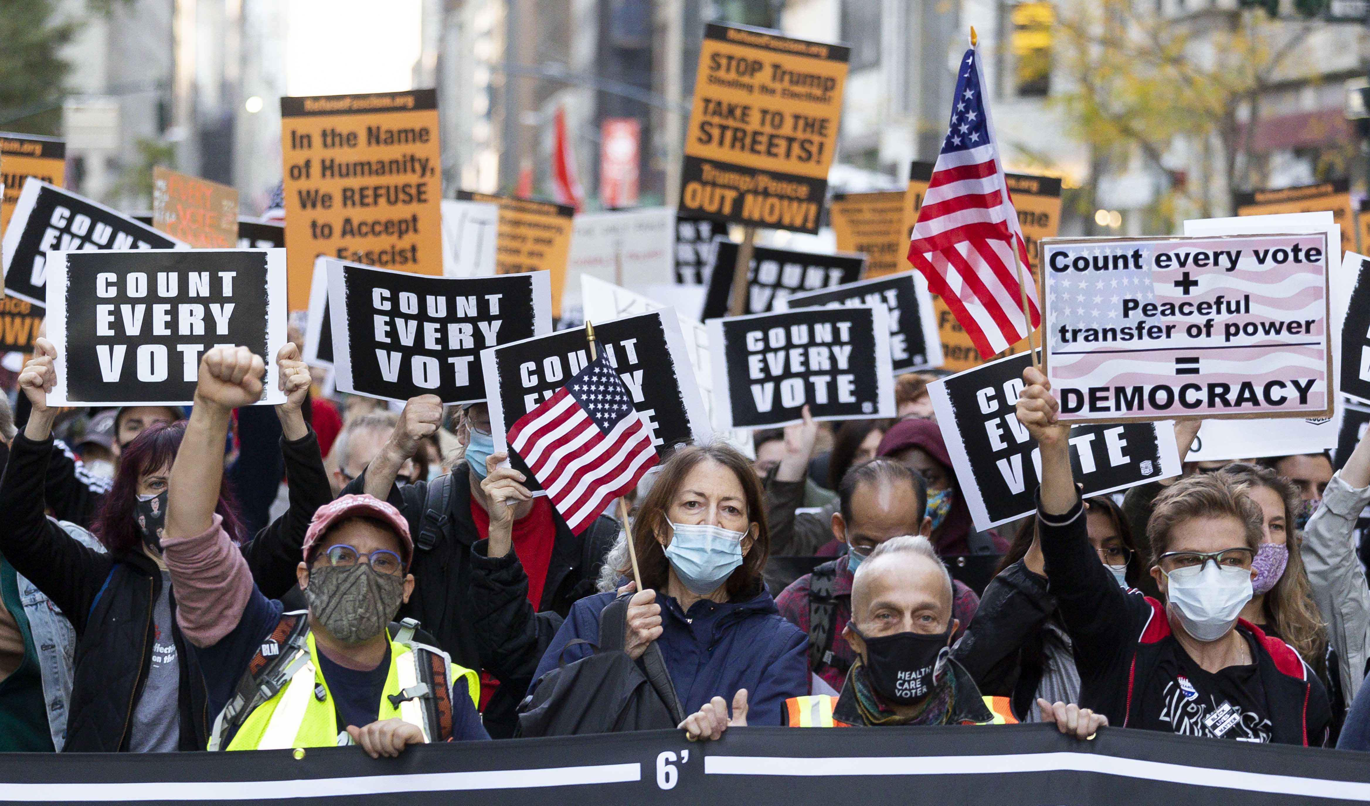 In North Carolina, Trump was leading Biden by more than 70,000 votes with an estimated 95 percent of the vote in. In Pennsylvania, Trump was up by more than 100,000 with a lead most analysts expect to disappear, eventually handing the state to Biden. If those margins become close, the late mail ballots may come into play.