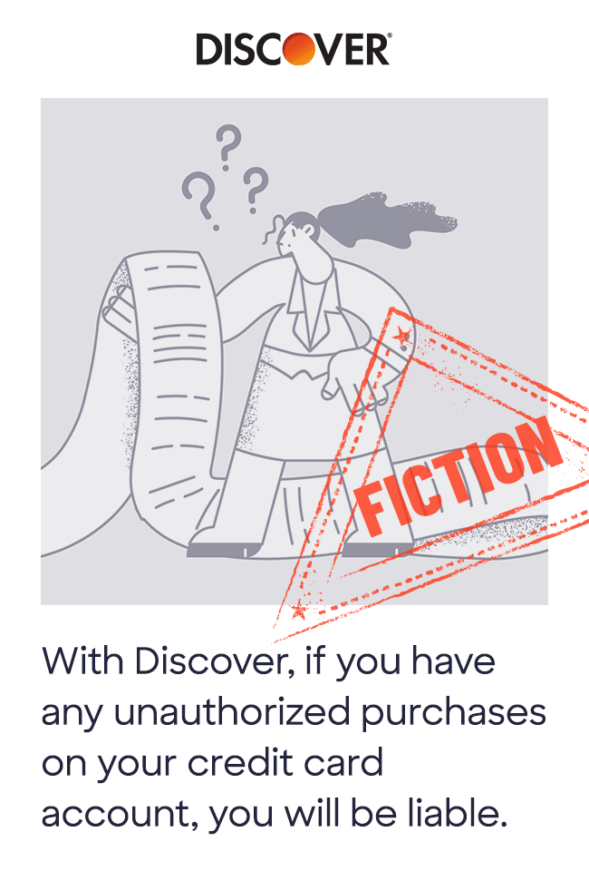 With its $0 Fraud Liability Guarantee, you won’t be held responsible for unauthorized purchases on your Discover card account.3