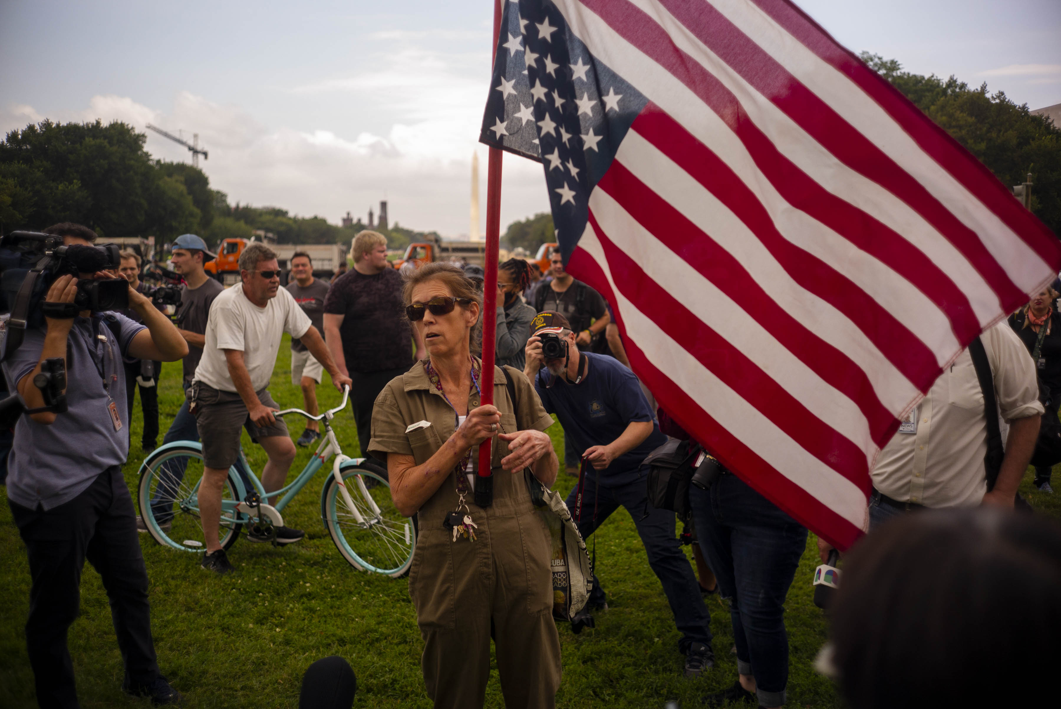 The D.C. rally’s low turnout, combined with a robust news media presence, led to sometimes surreal scenes. Protesters were so scarce that reporters and television news crews began queuing up to obtain interviews. By afternoon the rally had settled into a predictable cycle, as journalists swarmed to minor altercations or police inquiries that quickly evaporated.