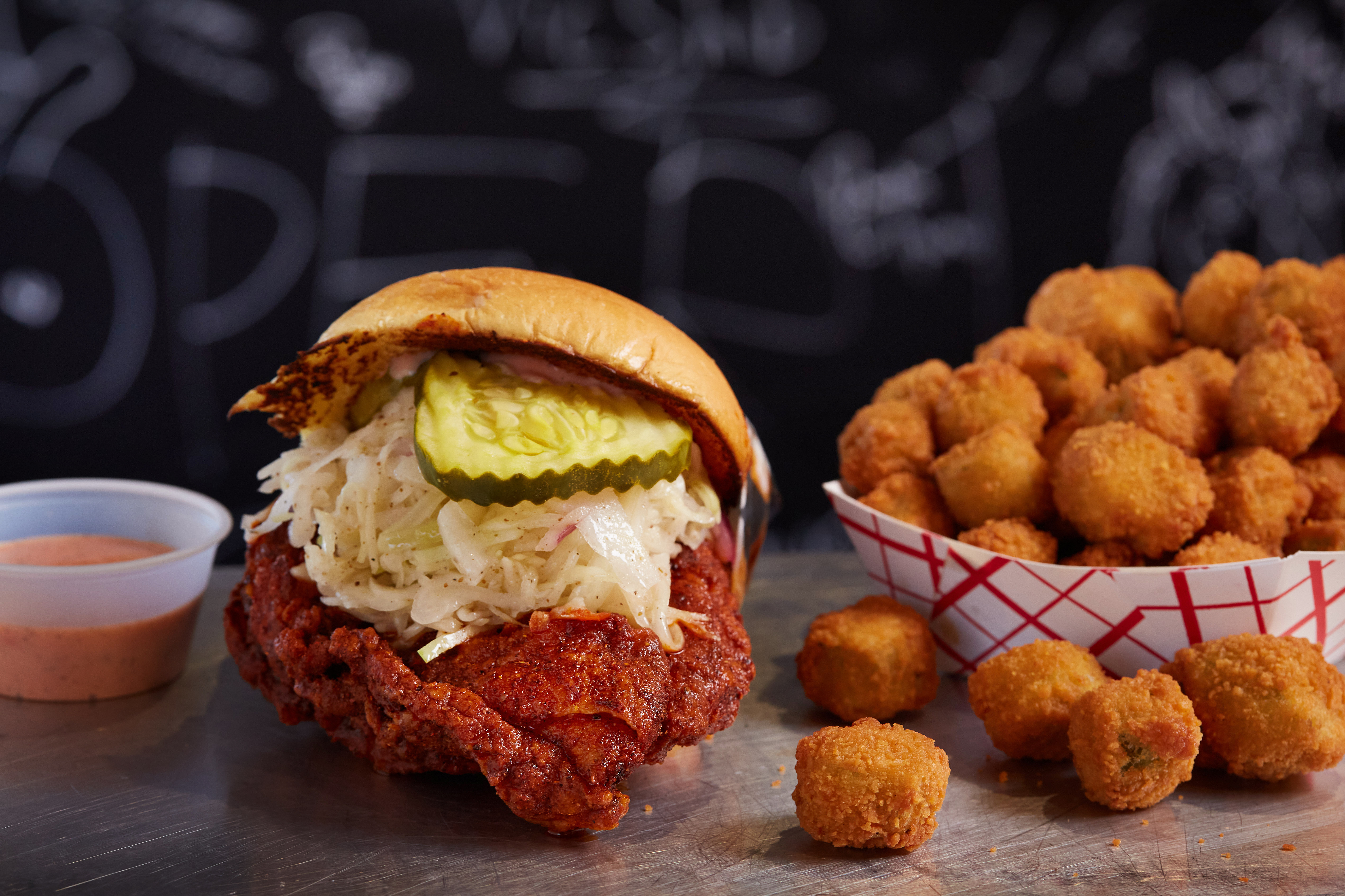 The genius of Choi’s shop lies in the fact that he hides the most elaborate parts of his business from public view: Diners may never grasp the precision behind every spice blend or learn about elusive sweetness in the chile oil or comprehend the transformation that takes place during the overnight brine. They just see the fryers bubbling with peanut oil (those with allergies take note), but they can taste the depth of flavor in every sandwich. Well, in every sandwich that doesn’t leave scorched flesh in its wake.