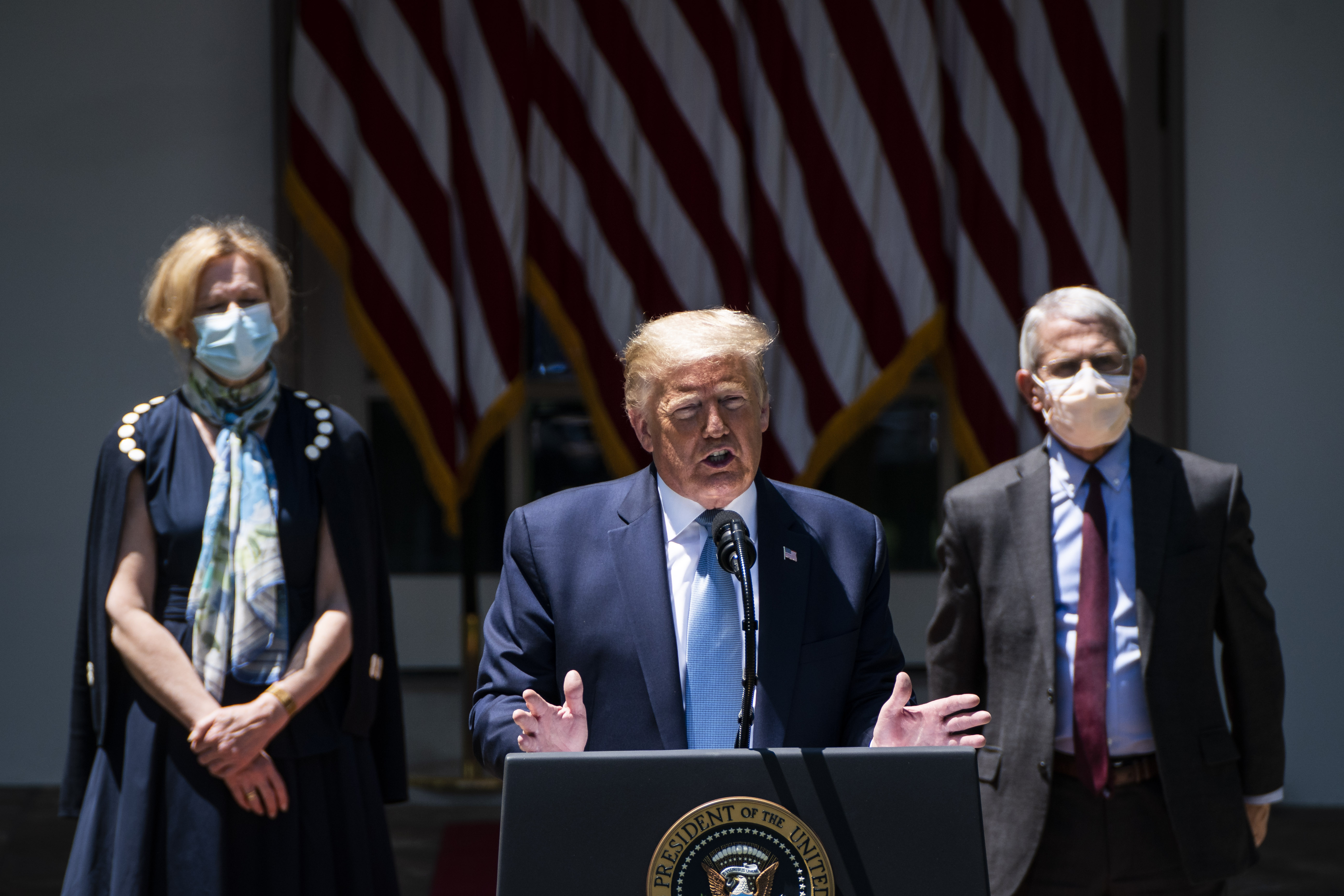 “Dr. Fauci and Dr. Birx moved far too slowly, and if it were up to them we’d currently be locked in our basements as our country suffered through a financial depression,” Trump said in a lengthy statement that mocked Fauci’s wild ceremonial pitch at a baseball game last year and insulted Birx’s hearing.