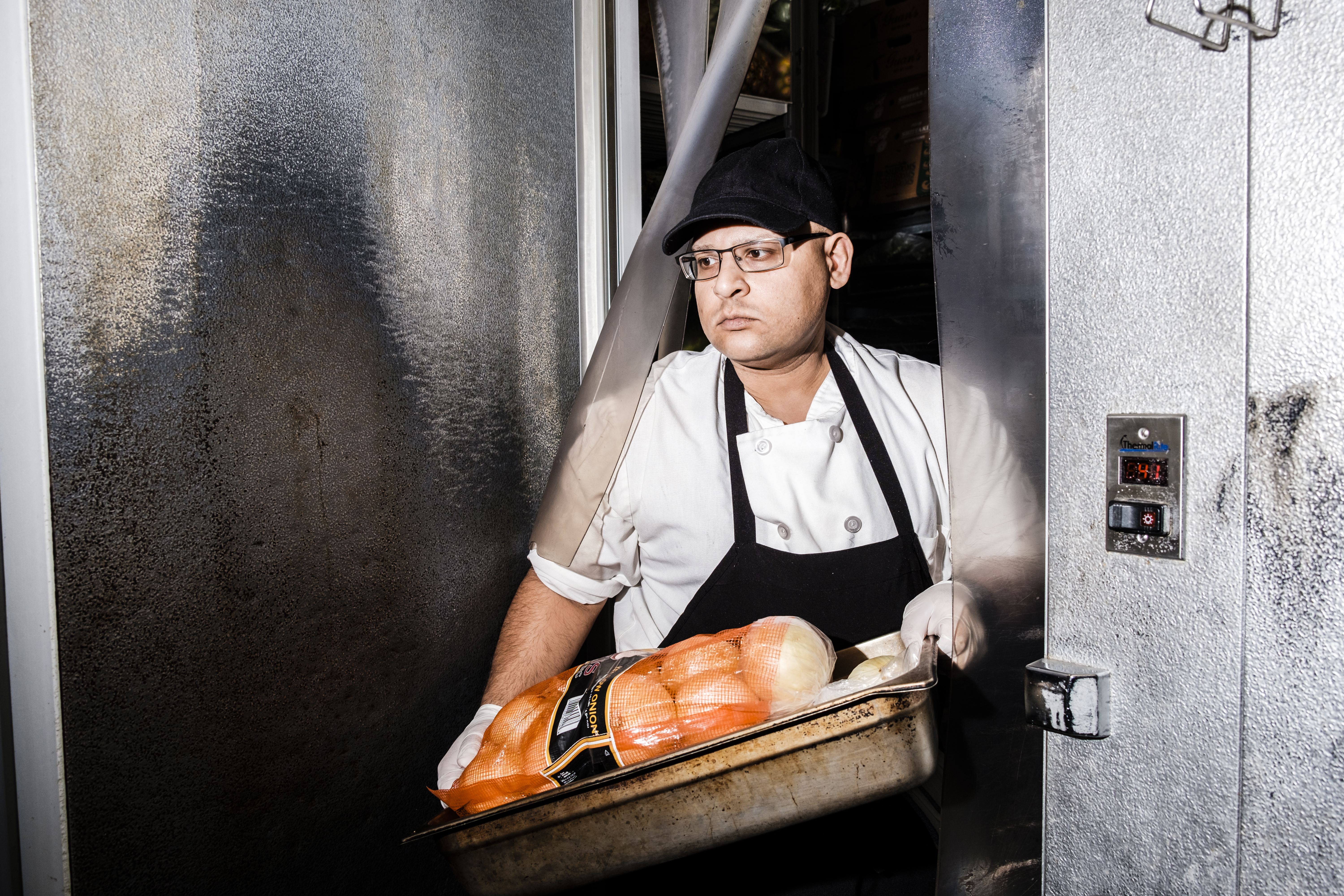 In three weeks with Pared, Sheikh worked 18 of 21 days — at a house dinner catered by Jean-Georges one night, at a Guggenheim gala another. He spent 70 hours tediously slicing or washing produce — 100 pounds of onions needed peeling and dicing, 20 cases of mushrooms needed slicing, 760 grapes needed halving. And an additional two hours daily commuting on New York’s infamously unreliable subway. He was always late to his therapist.