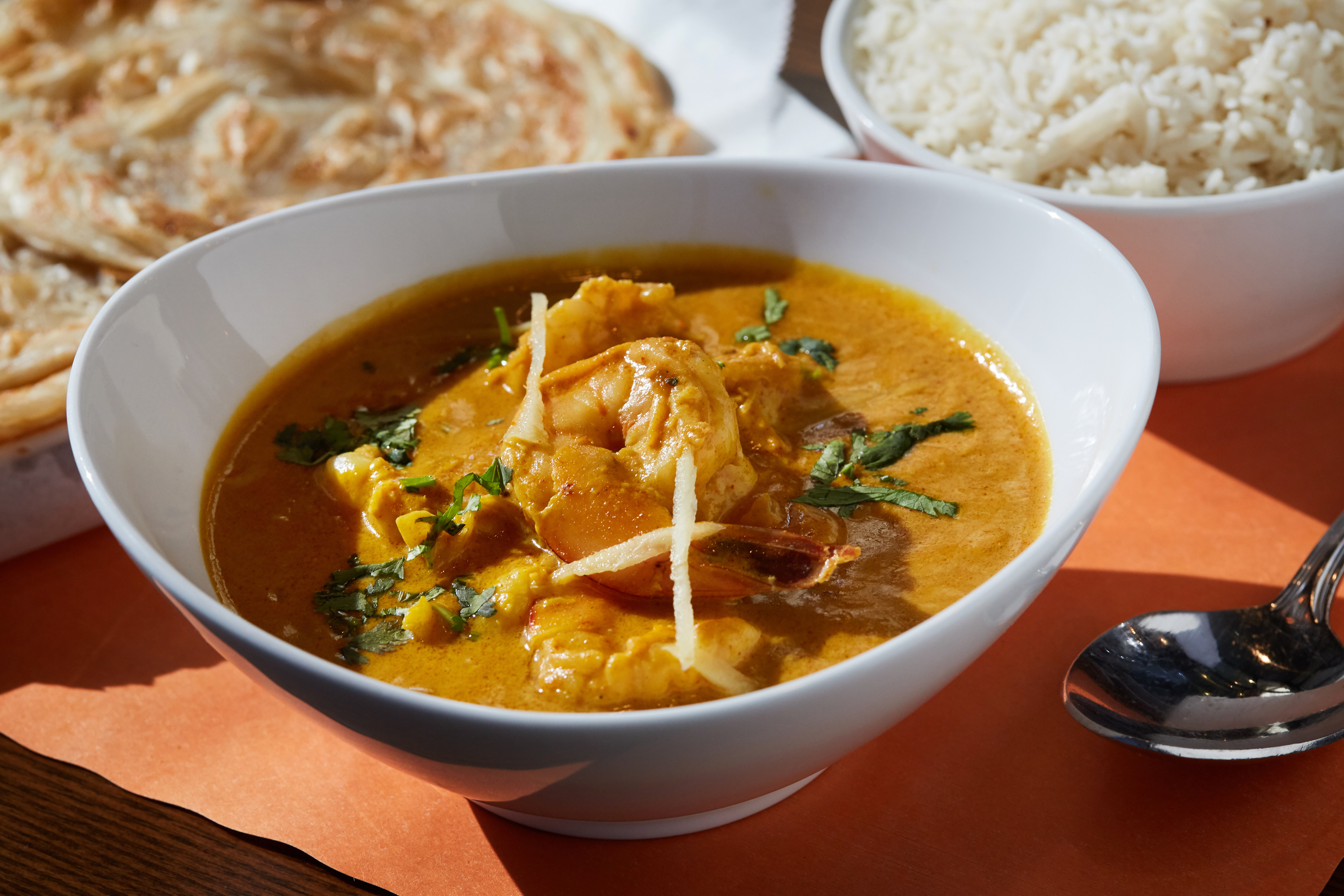 Come to think of it, there’s not much I can’t recommend at this young Indian restaurant, inviting in orange accents and set off with ornate screens. Anywhere else, the sizzling lamb kebabs might be a signature; here, they go unfinished only because the rest of the food on the table is so compelling. I’m thinking of velvety, sweet-hot Goan shrimp curry, and purple eggplant in a cloak of gravy that resonates with tamarind, peanuts and coconut. The flaky paratha, meanwhile, has become my choice mop. You will eat as if it’s Thanksgiving — too much, too fast — and love every minute.