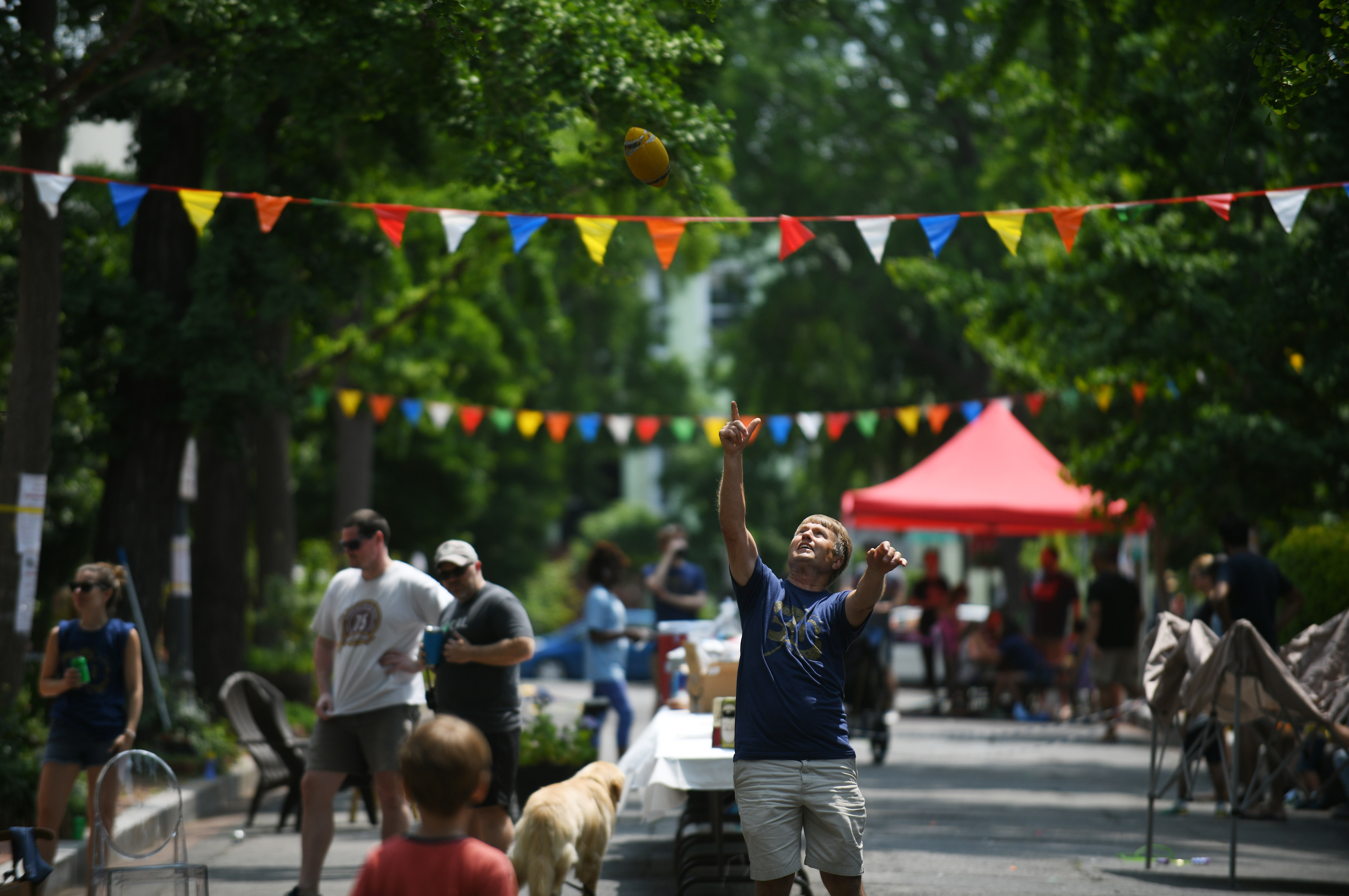 The day’s festivities had barely begun, and toddlers were already spraying each other with water guns on the Capitol Hill street lined with ginkgo trees and colorful rowhouses. Bubbles filled the Saturday morning air. A dog named Pretzel ran through a makeshift obstacle course of hula hoops and cardboard boxes.