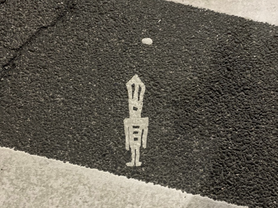 “The tarmac figures seemed like a good way to mark the territory where I had been working,” he wrote. “Sort of a ‘Bat Signal’ on the ground since that is where most people’s eyes go when they are walking.”