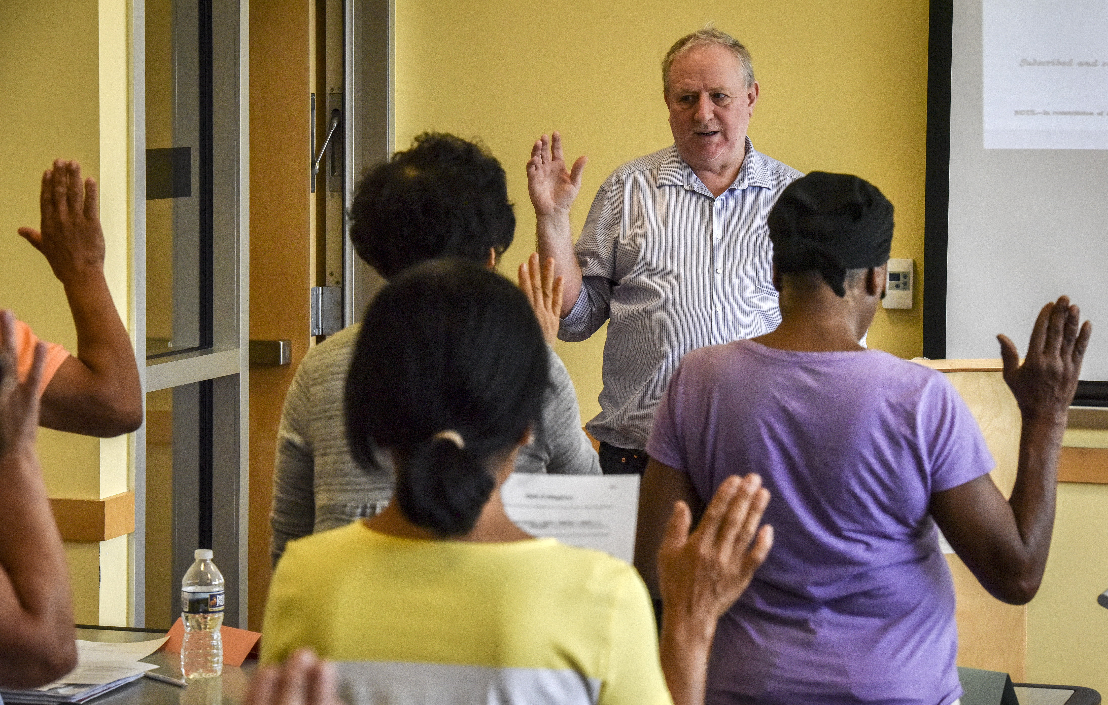 Yana Cascioffe, who coordinates the citizenship class in Gaithersburg through Baltimore City Community College, said these longer forms also have an effect on processing times: Because every question on the written application form must also be asked in person by a USCIS officer during the citizenship interview, sessions that used to take 30 minutes are now typically twice that long.