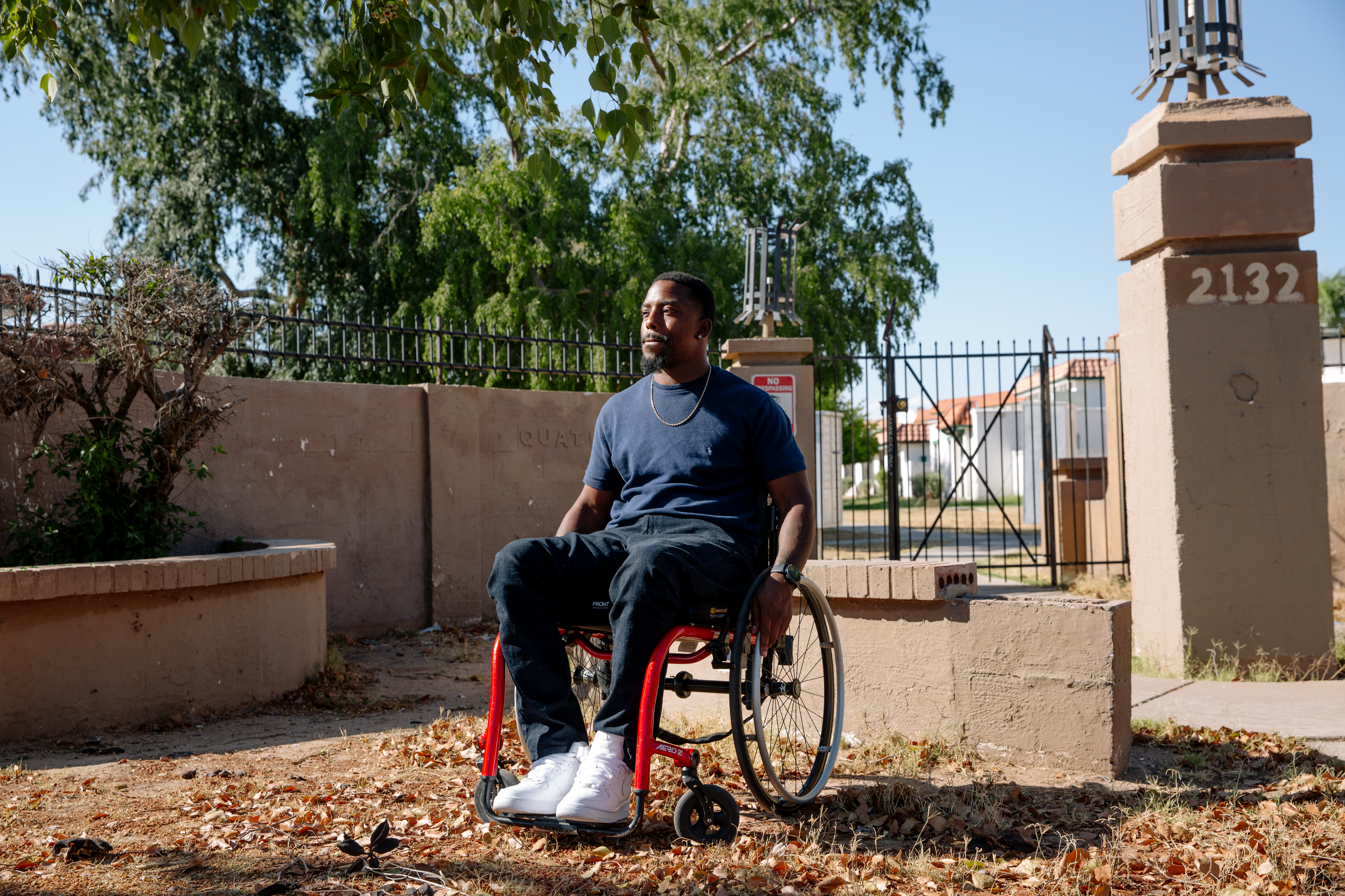 A hollow tip bullet fired from an officer’s gun in August exploded inside of him, shattering his spine. The 36-year-old now must use a wheelchair and is paralyzed from his upper stomach down, the divide between the body he can control from the body he can’t so familiar to his fiancee that she can trace the invisible line across his back.