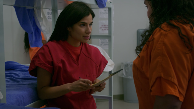 In the episode, women wearing orange jumpsuits and chains around their waists and down to their ankles go before a judge one by one, none of them represented by attorneys. Some end up deported. One immigrant, Karla, however, read up on her rights and demands that her hearing be delayed so she could have more time to find legal counsel, a request the fictional judge granted.
