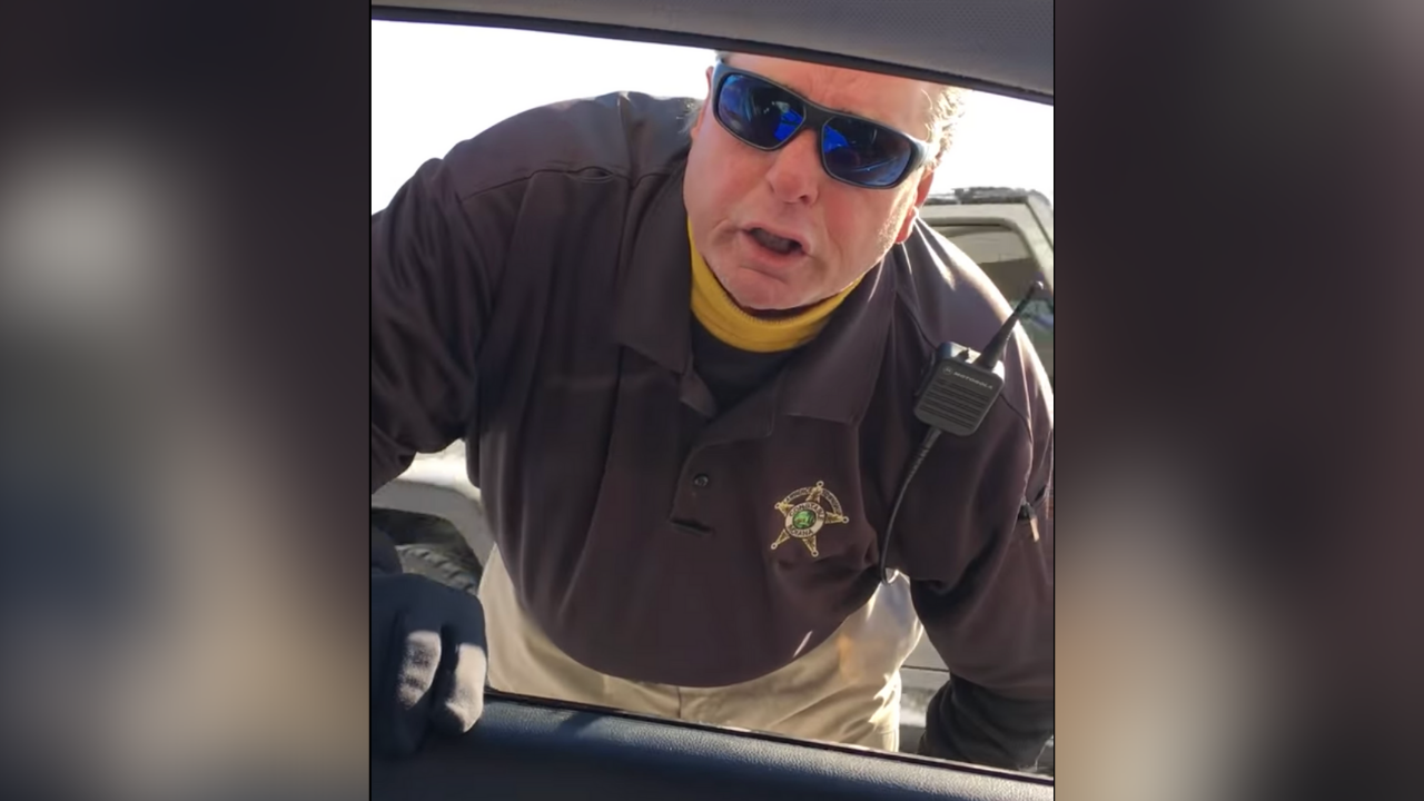 “As far as I know, based upon what happened, I don’t think either of us have any reasonable suspicion to believe there’s a crime taking place,” the officer says. “There’s no reason for a traffic stop at this point, so there’s no legal requirement for you to identify yourself.”