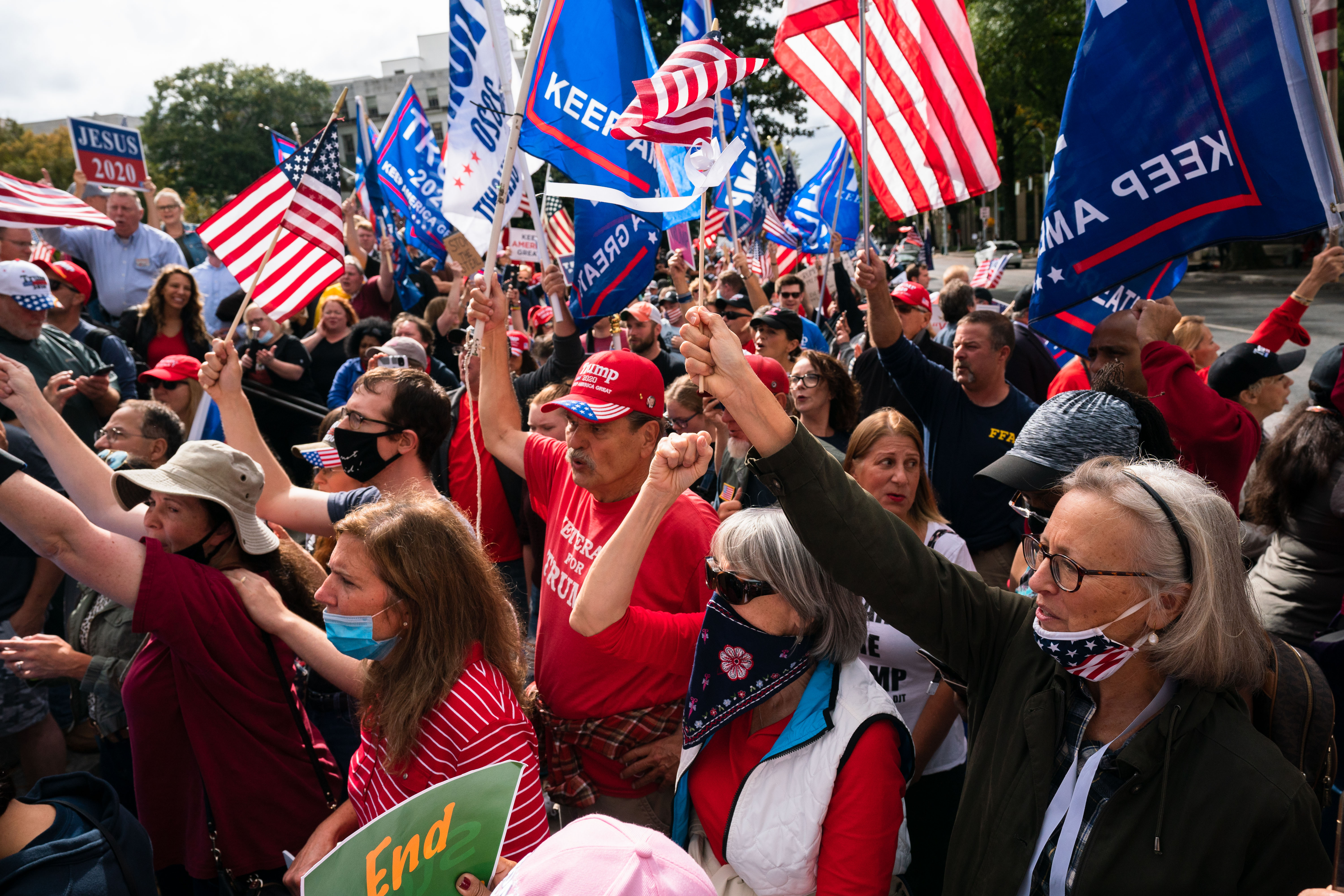 In Harrisburg, Pa., one of the events drew about 200 people, with large Trump 2020 flags and “Legal Votes Matter” signs waving as they milled near the state capitol. Some said they thought there should be a recount or even another vote entirely.