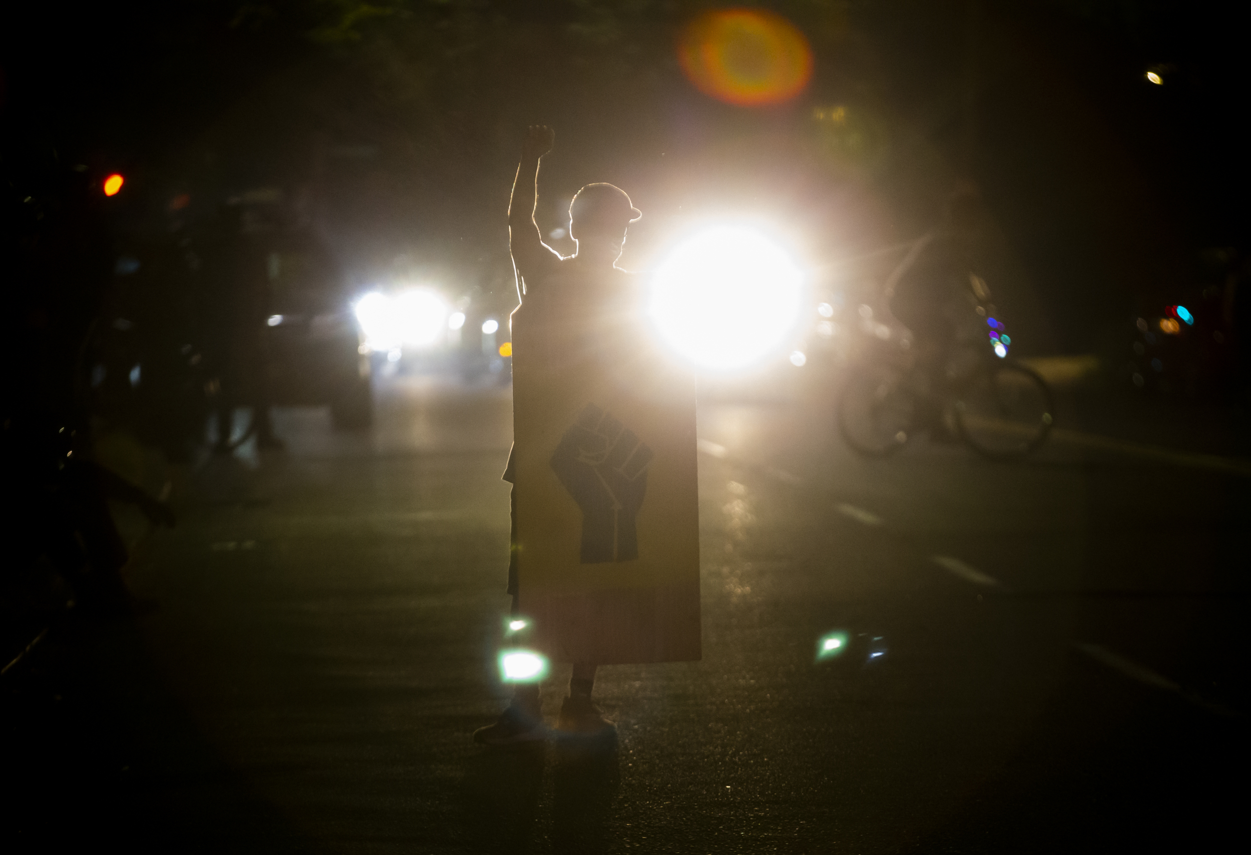 Earlier in the evening, a crowd had gathered to listen to speeches and marched towards the police precinct.