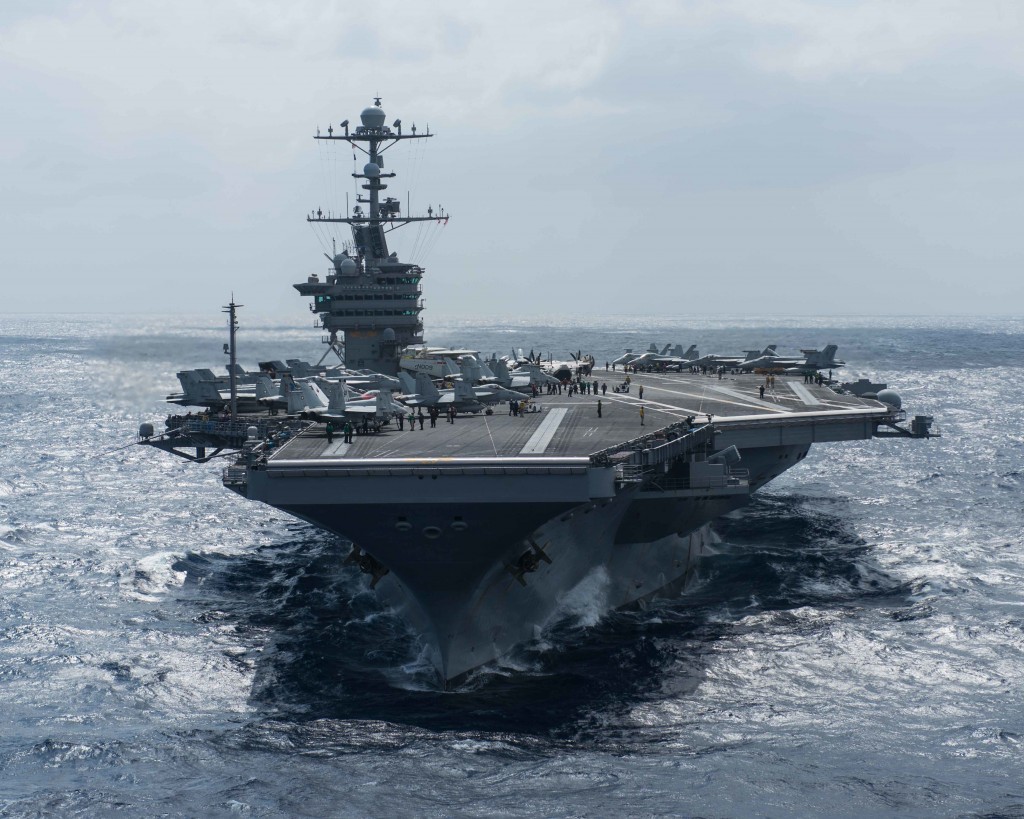 Aside from the carrier group, the Japan-based USS Antietam, a cruiser, also is currently patrolling the South China Sea, Doss said. The USS McCambell, a destroyer, and the USS Ashland, an amphibious dock landing ship, completed similar patrols last week.