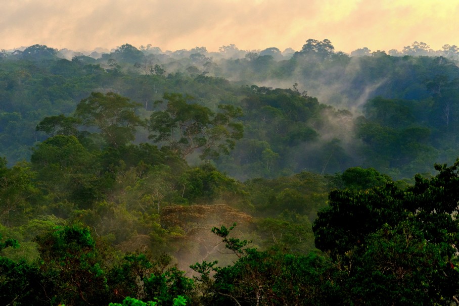 As the sun rises after an intense rain, the trees of the Amazon – a splash of different shades of green – seem to collectively perspire. Vast clouds of water vapor rise off them, a phenomena Lovejoy says is driven both by countless leaves opening and closing their stomata (or pores) and letting water out, and also evaporation off of the forest.