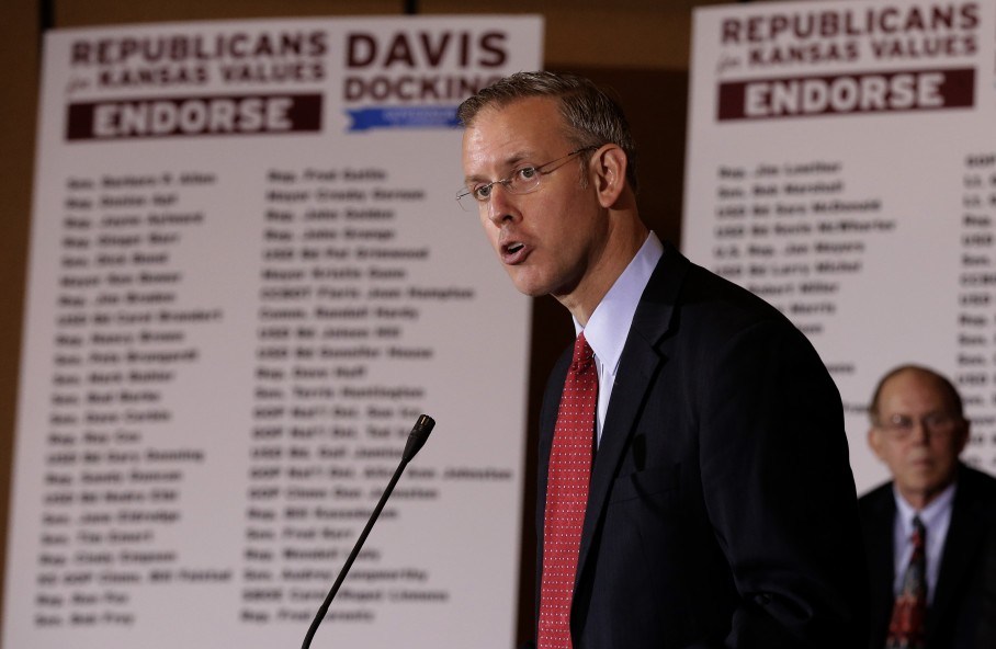 The collection of Republicans, dubbed "Republicans for Kansas Values," endorsed Davis's bid at an event in Topeka. They oppose Brownback for a laundry list of reasons, including tax cuts he spearheaded, cuts to education spending and his alienating some centrist members of the GOP.
