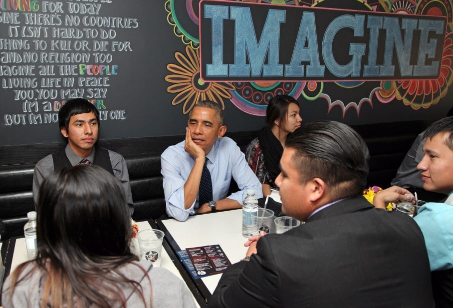 Last month, 18 students spent three days in Washington at Obama's behest, visiting the National Museum of the American Indian, attending a conference on Native American youths at the Substance Abuse and Mental Health Services Administration, and going to a Washington Wizards game. The group spent two days at the White House, visiting the basketball court (no games were played), getting a tour of the Oval Office and eating lunch at a Washington pizza place with the president and first lady.