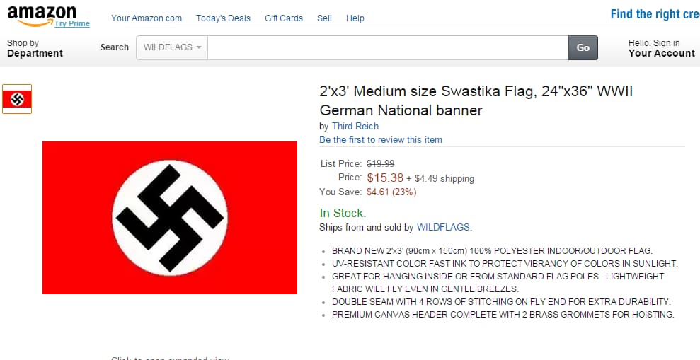 And Amazon, through the affiliate program, distributes between 7 and 10 percent of referred sales to its “partners;” Nazi flags, Swastika pins and other “white pride” memorabilia also sell in Amazon’s “Marketplace,” where Amazon collects fees of 8 to 45 percent. To become a member of the affiliates program, Amazon requires applicants to confirm that their sites do not “promote discrimination, or employ discriminatory practices, based on race, sex, religion,” or a number of other categories. That does not appear to have stopped several white supremacist groups from slipping through. (Amazon’s founder and chief executive, Jeffrey P. Bezos, is also the owner of The Washington Post.)