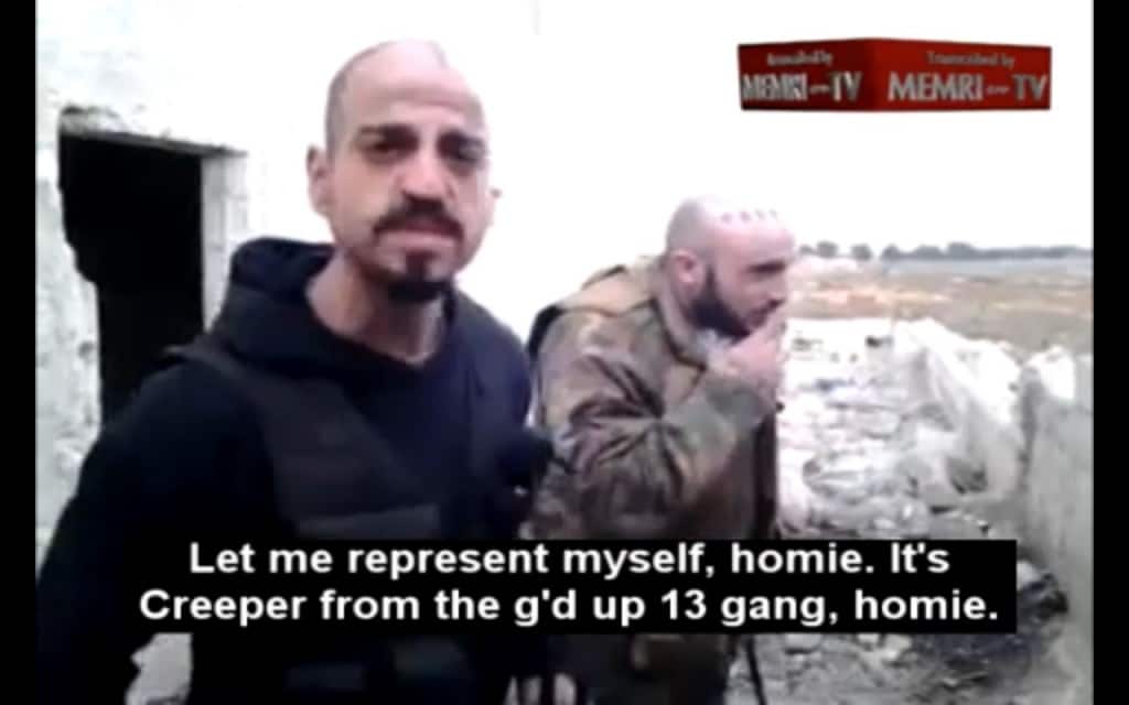 "In Middle East, homie, in Syria, still gangbanging," says Creeper, in comments typical of the 2 1/2-minute video.