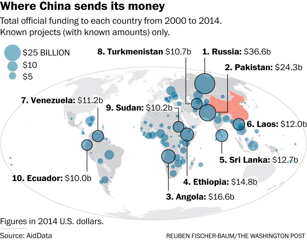 “The criteria for China to provide foreign aid is not the nature of the government, but the convergence of interests,” said Yun Sun, an expert on Chinese funding who is with the Stimson Center in Washington. “That need could be political, commercial, or even reputational.”
