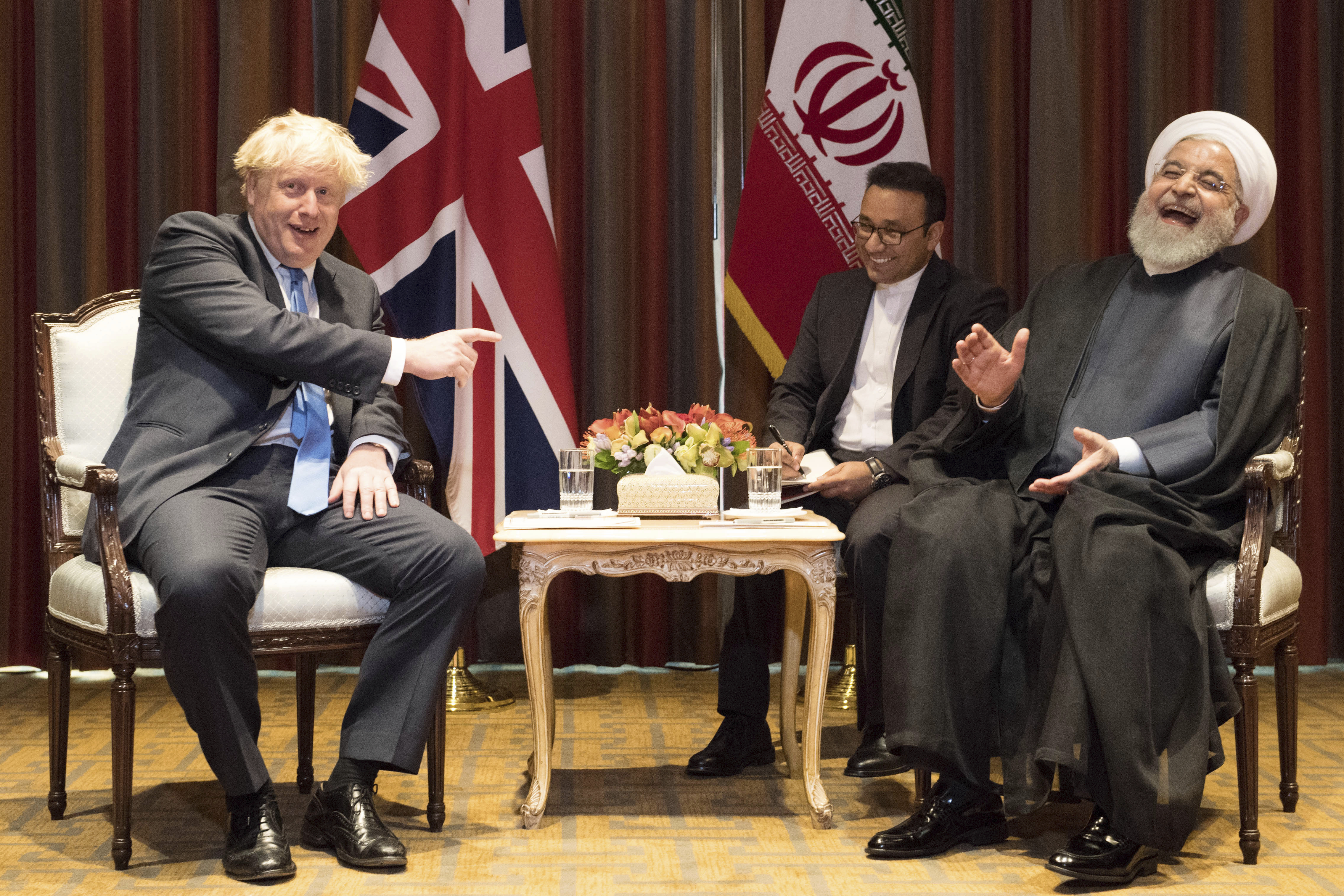 Yet he declined the offer, both publicly and privately. The British and the French, U.S. allies and co-signers of the Iran nuclear deal, urged Rouhani to accept. In what were possibly his most coherent comments during his visit to New York, British Prime Minister Boris Johnson jokingly nudged the Iranian president to take a leap of faith. “You need to be on the side of the swimming pool and jump at the same time,” Johnson said. Rouhani just laughed.