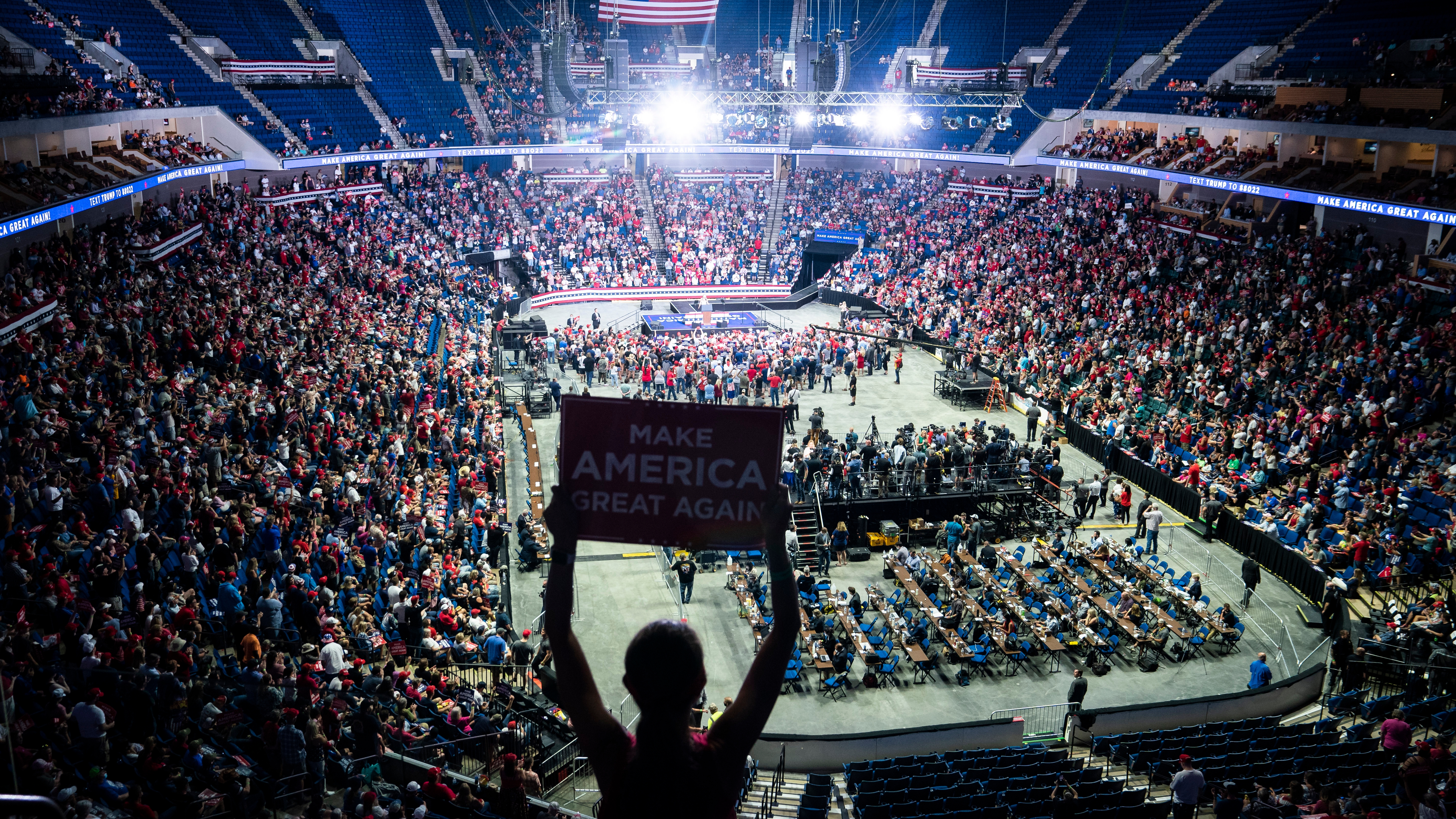Unless, that is, the rallies stay outside — in small college or high school stadiums that people can enter through many gates — or on tarmac where Air Force One sits in the background. When candidate Trump would fly to Youngstown-Warren Regional Airport in Vienna, Ohio, during the 2016 campaign, the crowds were always immense.
