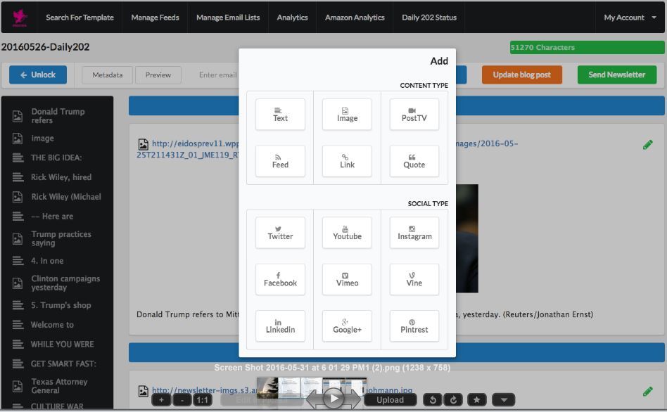 “The most engaging newsletters today are likely to pull in content from a variety of sources, including video, photo and social channels. With reporters working on tight deadlines, this tool’s intuitive interface helps simplify that process and delivers a clean, responsive product for our readers,” said Eric Rich, Universal News Desk editor at The Post.
