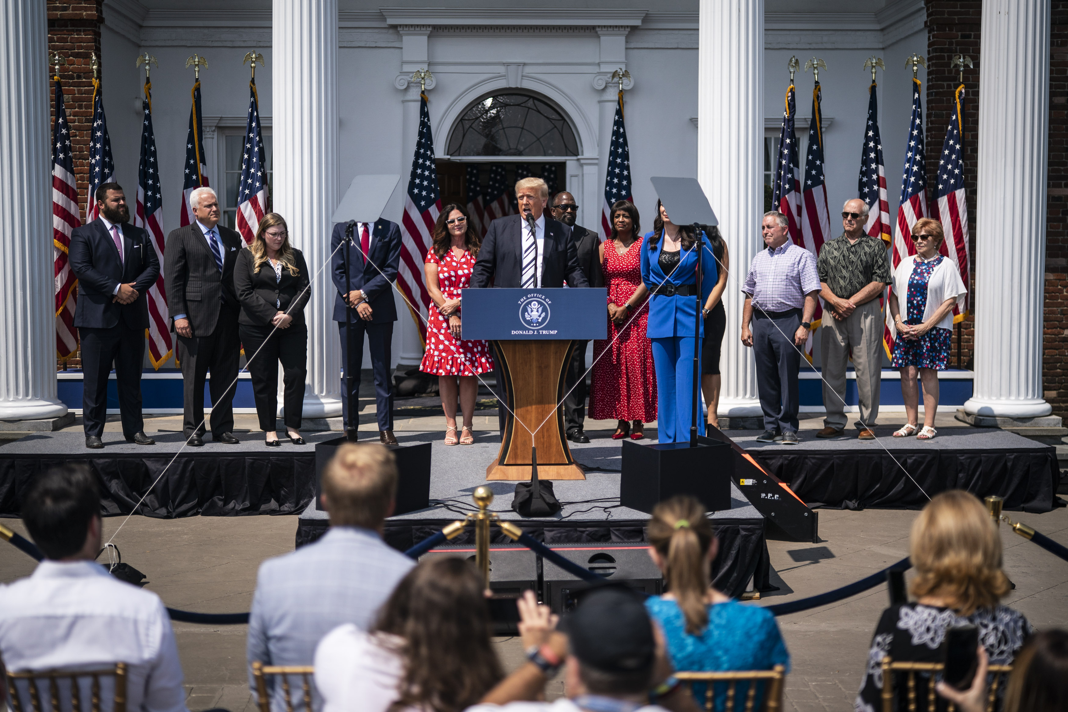 With flags rippling and cameras rolling, flanked by his staff and loyalists, Trump took to a lectern to decry what he called “social media companies’ shameful censorship of the American people.” That the lectern was at his golf club in Bedminster, N.J., rather than in the White House Rose Garden was hardly noticeable. He was back in the spotlight, inveighing against powerful interests on behalf of freedom-loving Americans. The news conference cast Trump in his favored role of righteous, aggrieved crusader against elite institutions — in this case, big tech companies, which Americans of both political parties have grown to mistrust.