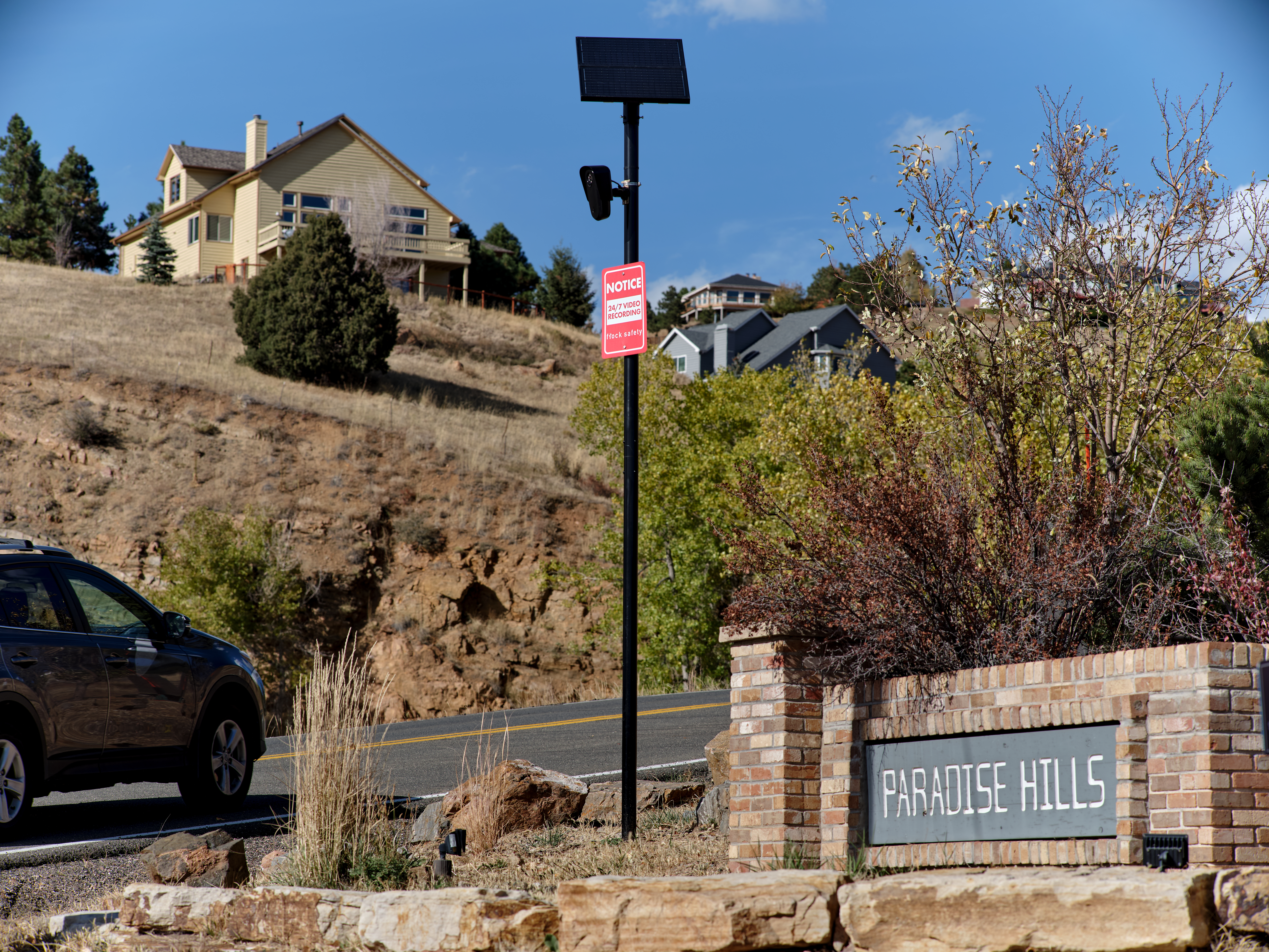 The April announcement from the homeowners board said the newly convened “safety committee” wanted the two Flock cameras to monitor vehicles driving on Paradise Road, the neighborhood’s main entryway and a connector for nearby tourist spots like the Enchanted Forest Trail and the Buffalo Bill Museum and Grave.