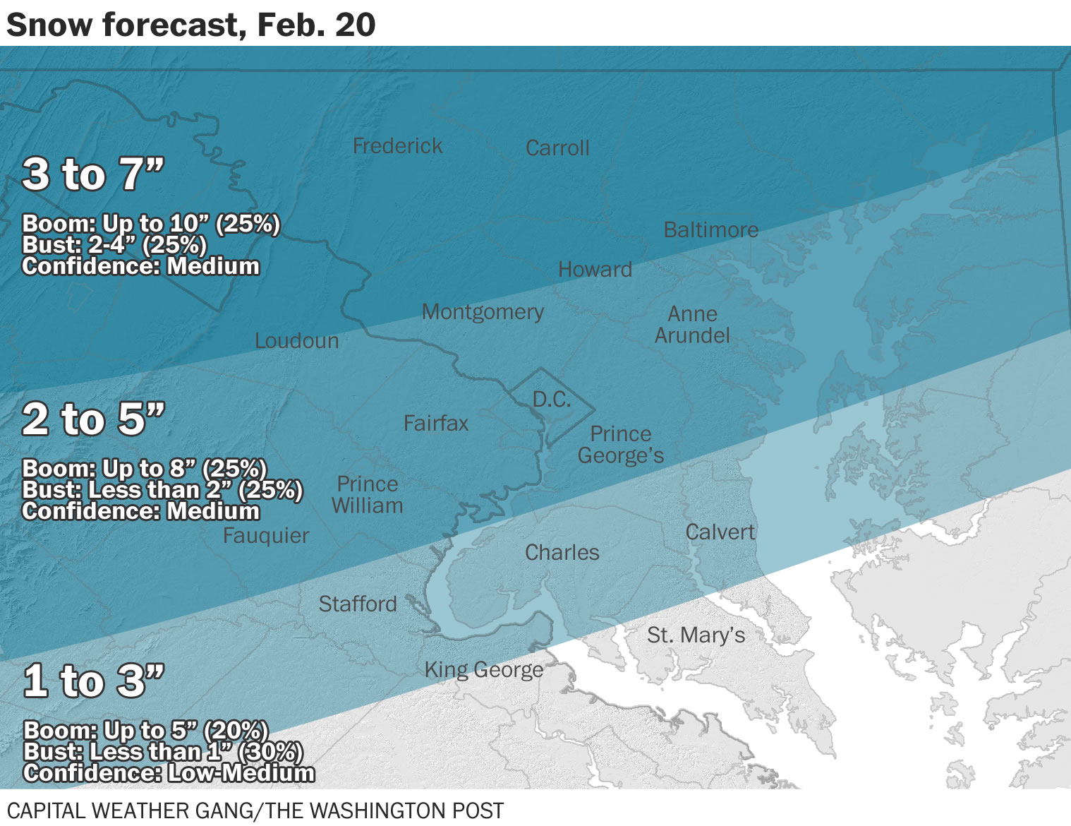 On Capital Weather Gang’s winter storm impact scale, this rates as a high-end Category 2 “disruptive” storm in the immediate metro area (Zone 2) but a solid Category 3 “significant” storm in our colder areas to the north and west.