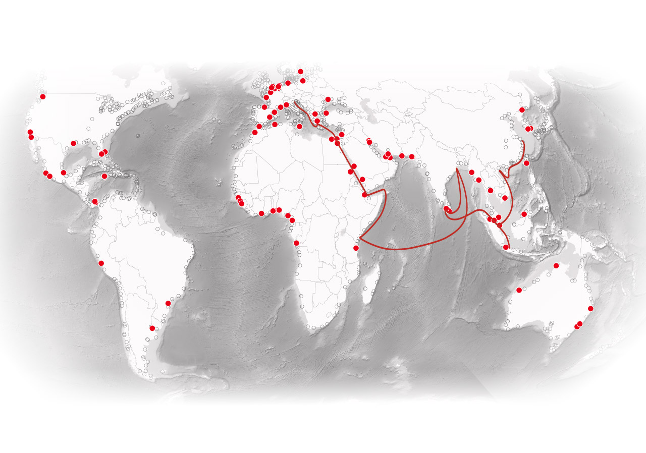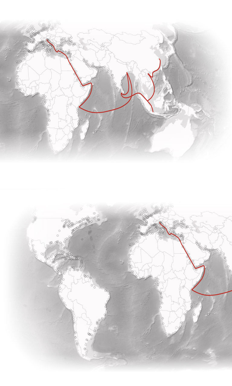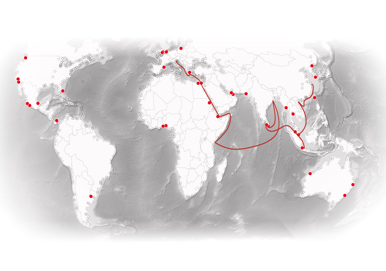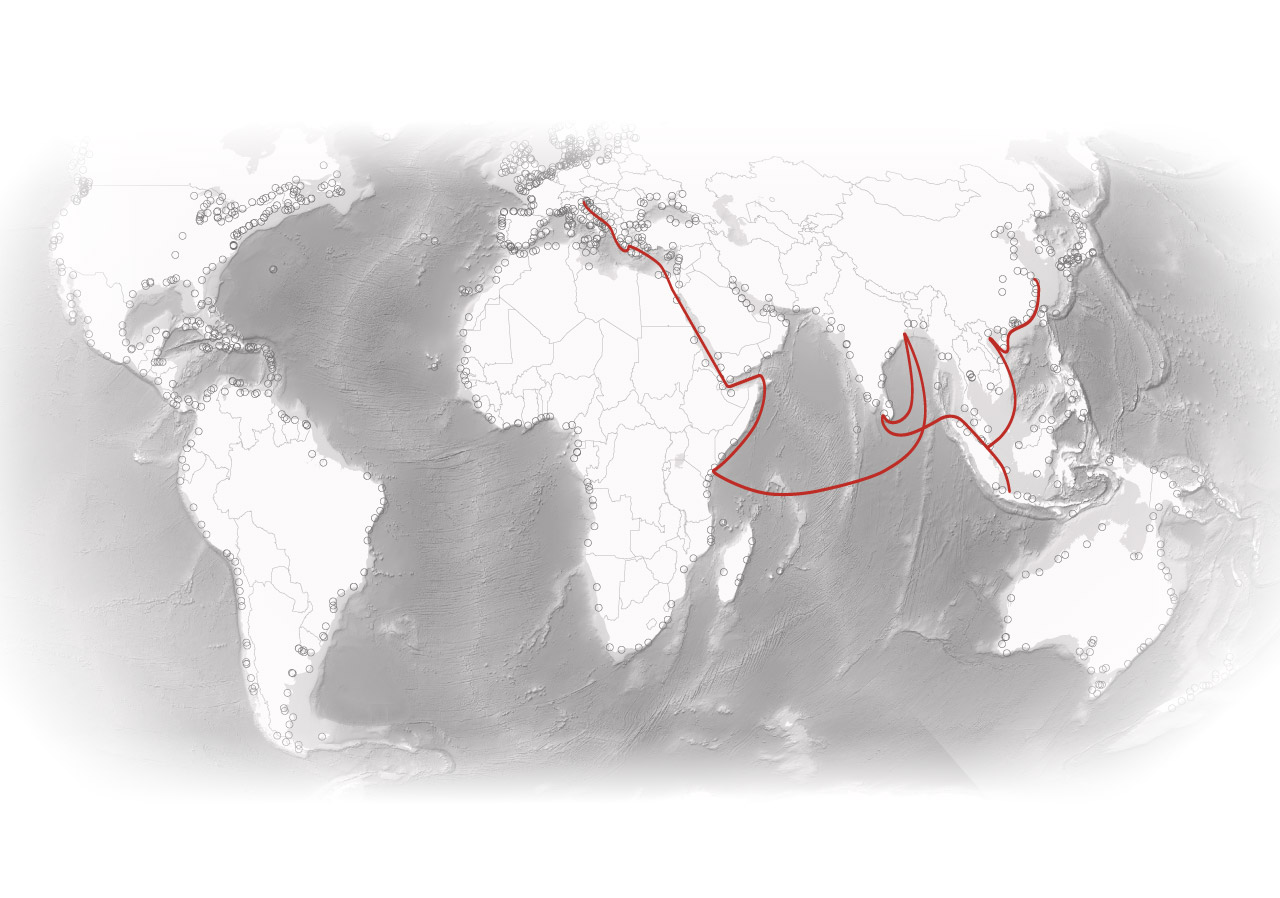 A journey along the Maritime Silk Road</span> illustrates some of the strategic advantages of <span class="dot ports"></span><span class="key-label">China’s port investments.</span>