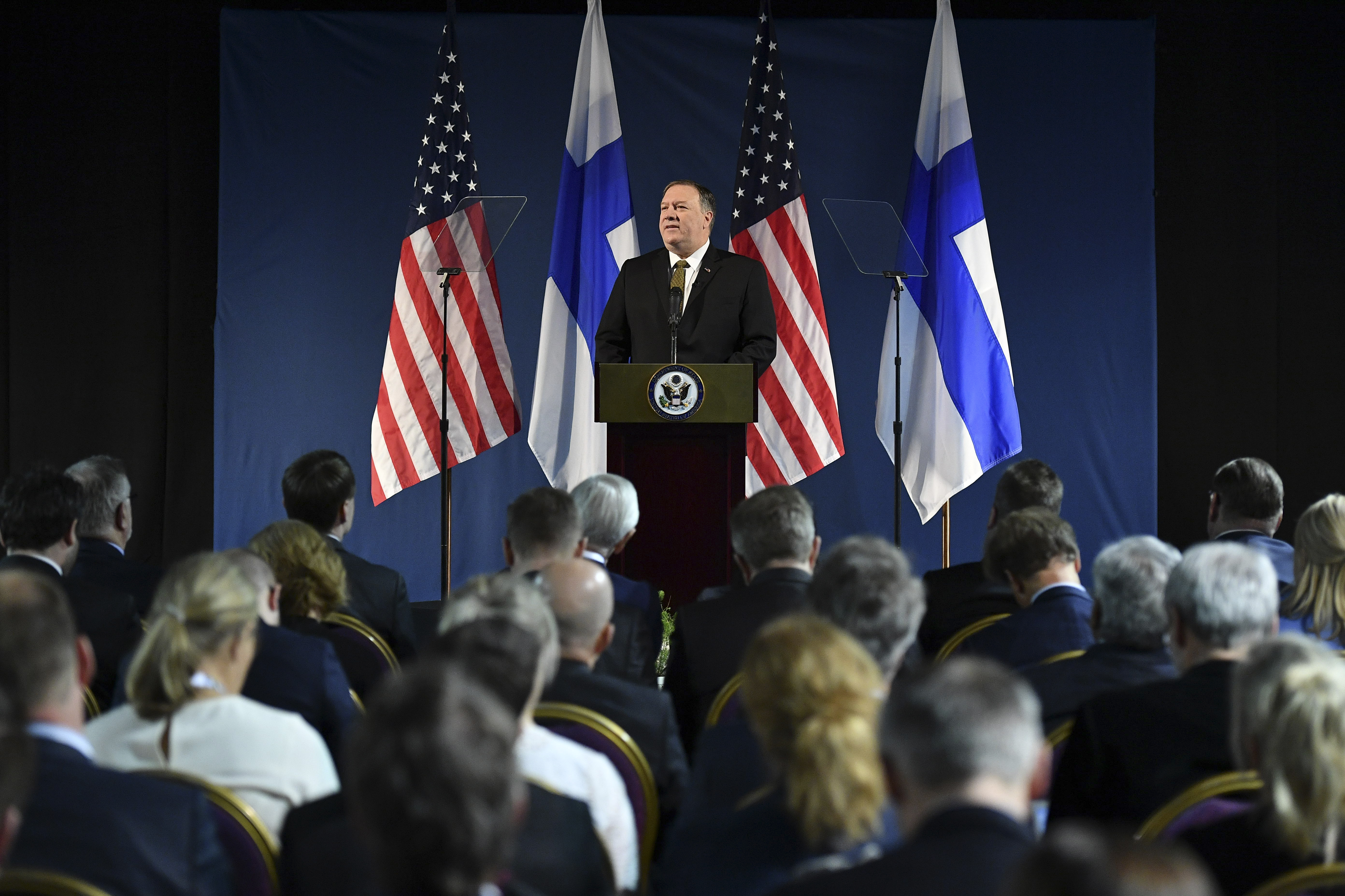Pompeo met briefly with Russian Foreign Minister Sergei Lavrov on the sidelines of the meeting. In remarks to reporters afterward, Pompeo said his conversation with Lavrov was “factual.”
